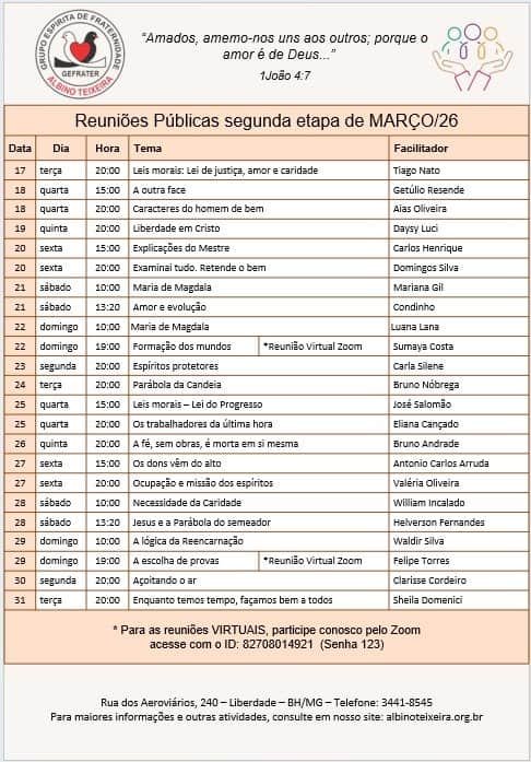 16 de março de 202617 de março de 2026 Categorias:Informes, Sem categoria 17 à 31/03: Programação de reunião pública