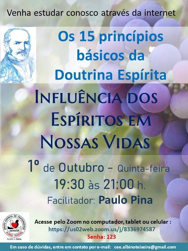 Tema do estudo: Influência dos espíritos em nossas vidas Senha de acesso: 123 |