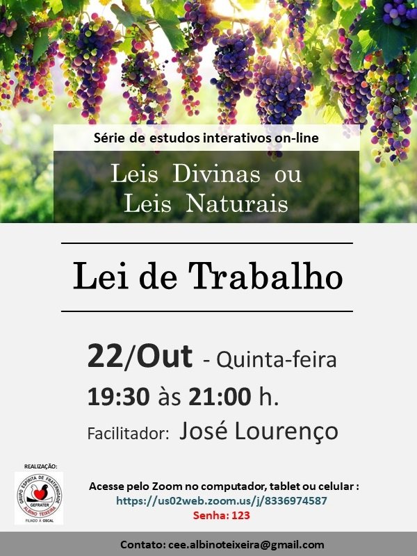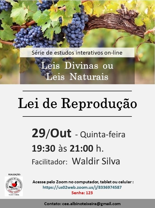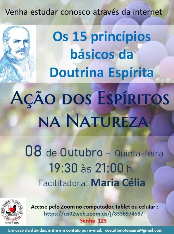 Tema do estudo: Ação dos espíritos na natureza. Senha de acesso: 123 |